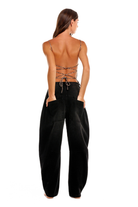 The Fallon Pants feature a modern barrel-leg silhouette with zip fly and button closure.