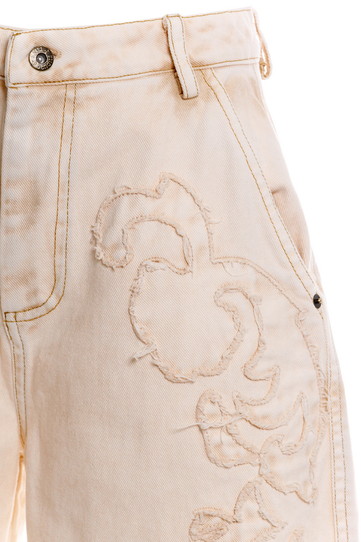 They stand out with tonal embroidery, intentional fading, and light whiskering.