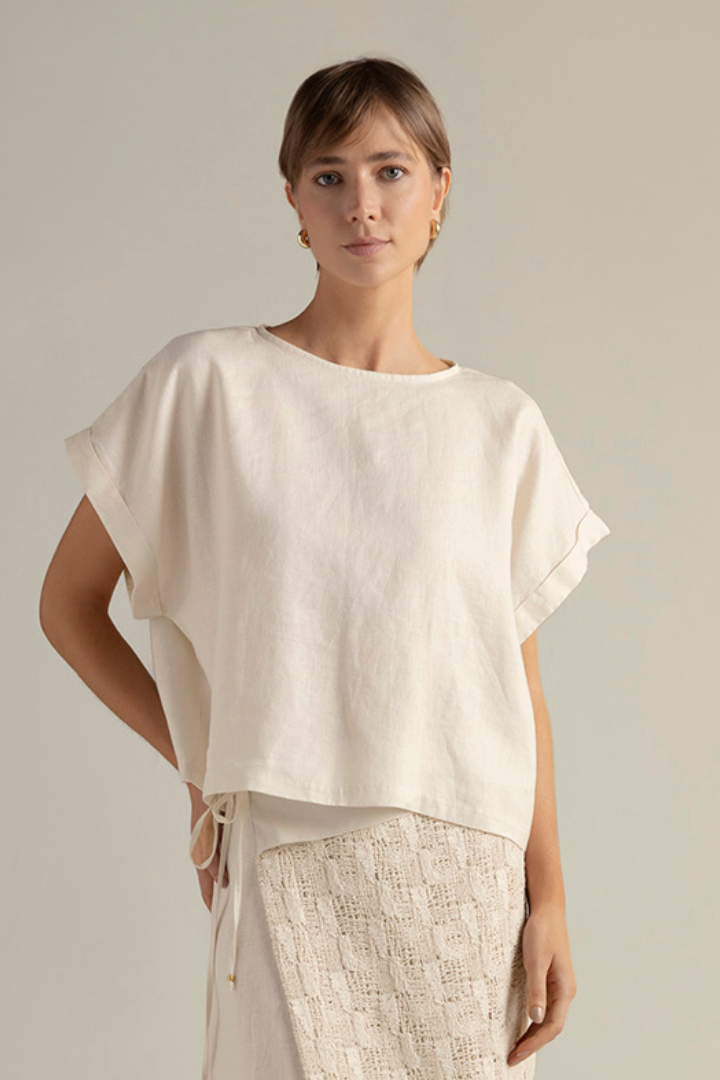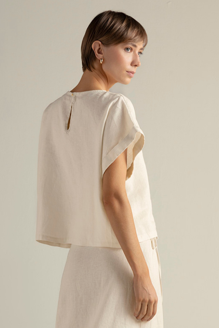 Short Sleeves Cream Top