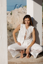 The Aurora vest is a light and versatile piece designed for layering at the beach or poolside.