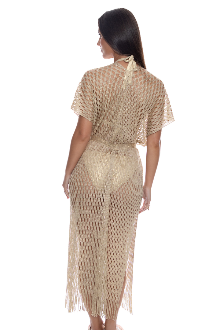 - Trendy open front poncho dress that doubles as a V neck beach cover up