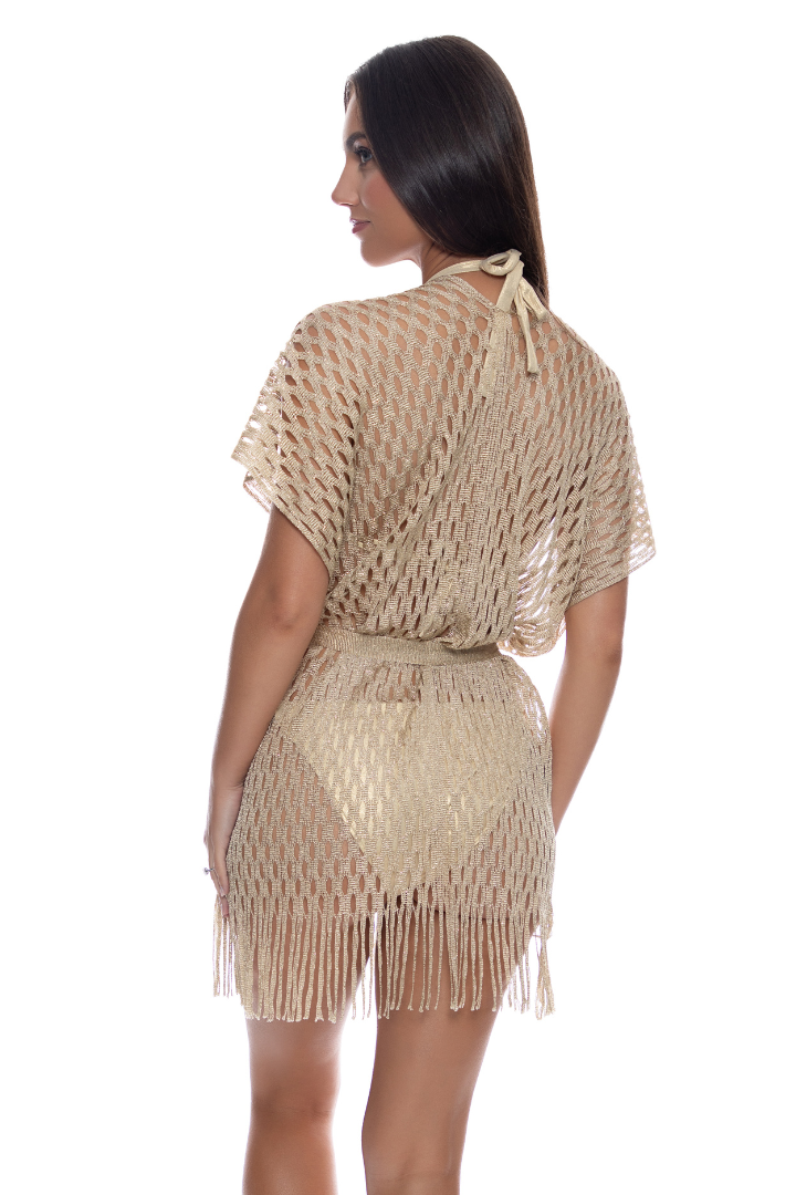 - Trendy open front poncho dress that doubles as a V neck beach cover up