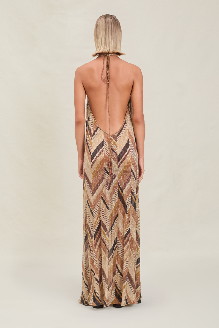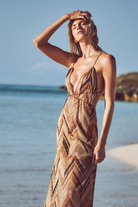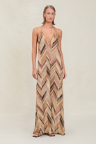 The Isadora is a V-cut maxi dress with thin adjustable straps to multi-tie and tassel detailing.
