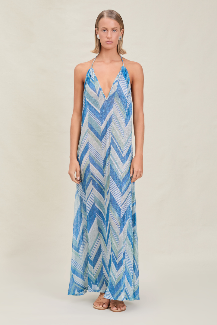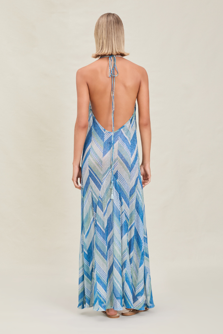 The Isadora is a V-cut maxi dress with thin adjustable straps to multi-tie and tassel detailing.