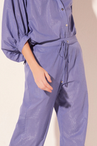 The Nectar Navy Straight Pants, in shiny striped cotton, feature a straight cut and a 4 cm waistband that enhances the waist with structure and comfort. The elastic at the back of the waistband ensures a better fit, while the false fly and side pockets add practicality to the design. The lapels applied at the back complement the piece with a touch of subtle sophistication. The cotton fabric with shimmering stripes reveals a delicate sheen, combining natural comfort and refined elegance.
