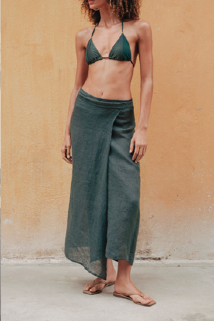 - Pareo skirt in 100% green linen gauze.