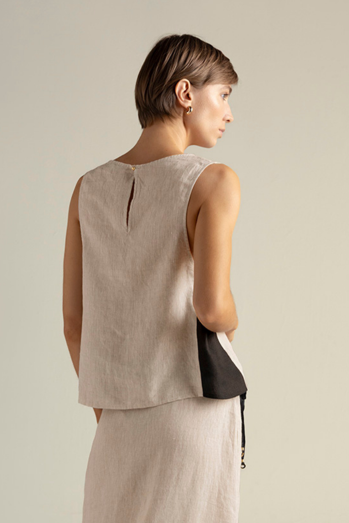 Top Khaki/Black Linen