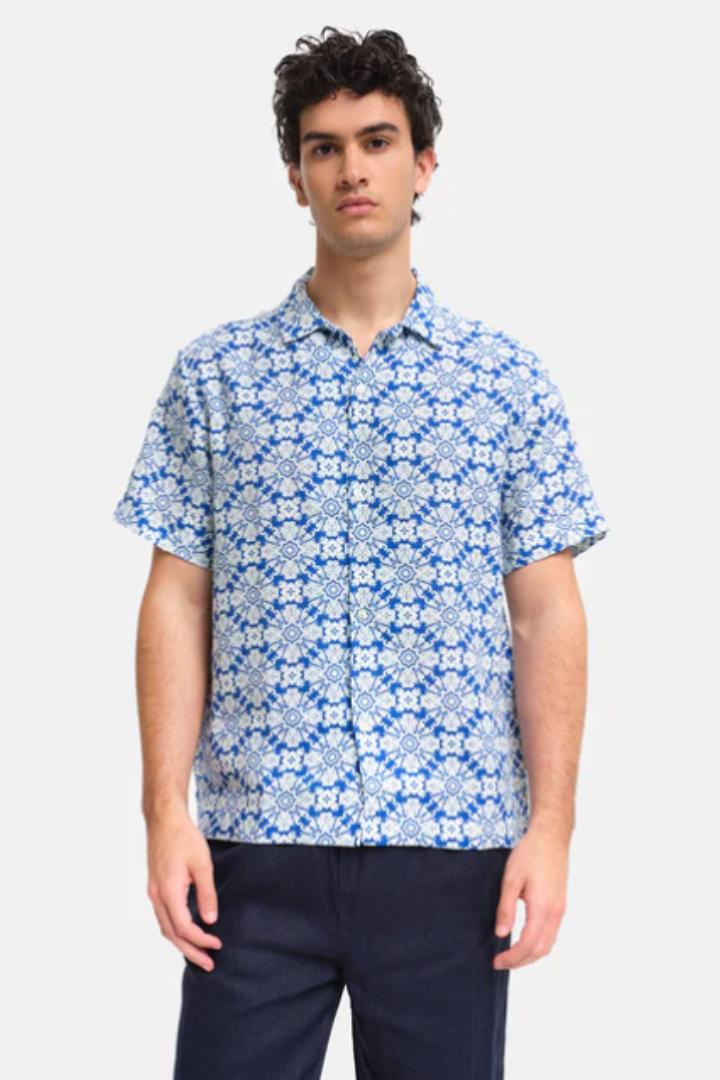 Eric Shirt Short Sleeve Coral Blue