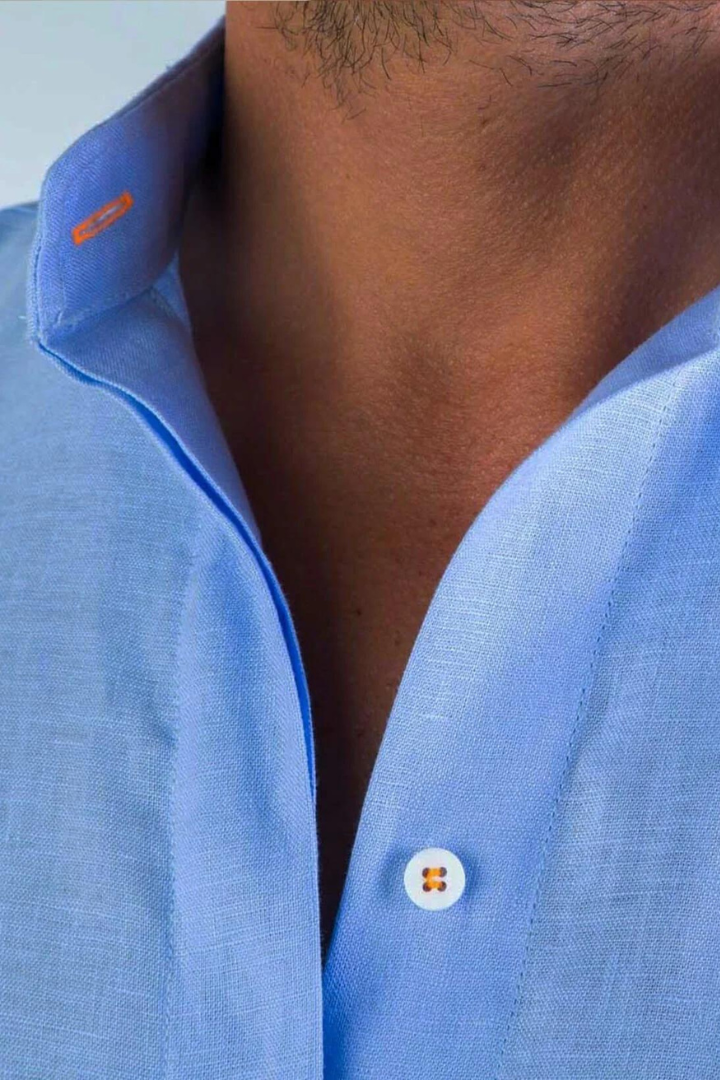 Menorca Linen Shirt Blue/Orange
