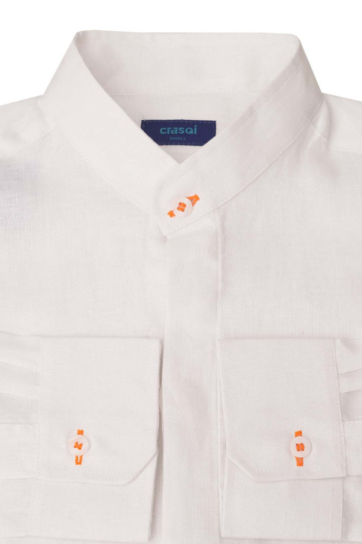 Menorca Linen Shirt White/Orange