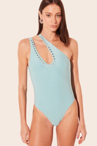 One Shoulders One Piece Blue Embroidered Mirrors