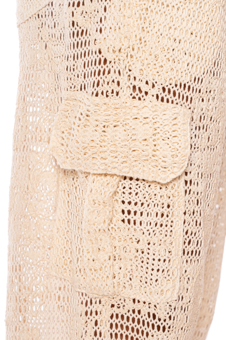 Cargo pants, but make it crochet. Crochet, but make it mesh. Mesh, but give it stripes. Our Elodie crocheted cargo pant is a total masterpiece that gives you a look that is pure maajic.