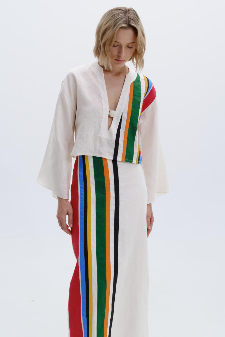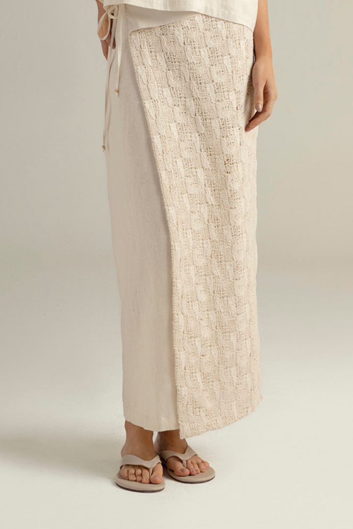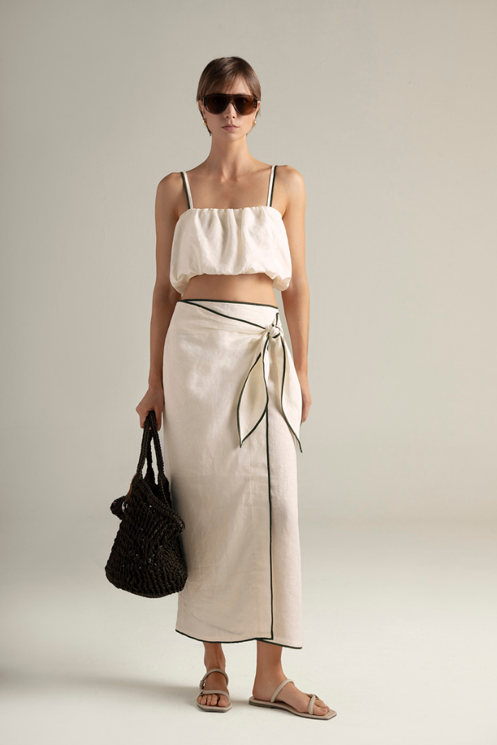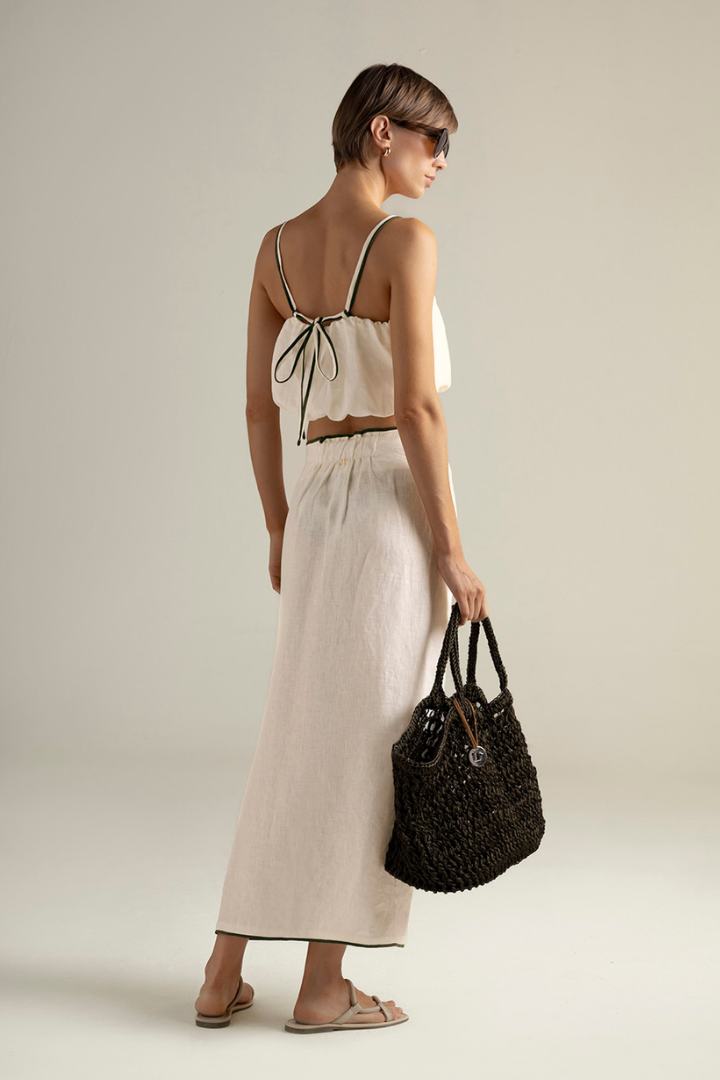 Strappy Top and Long Ivory/Green Pareo Skirt Set