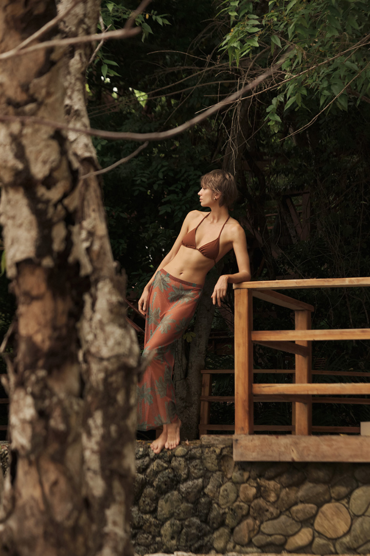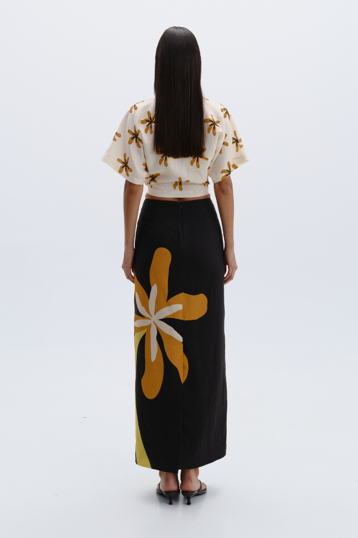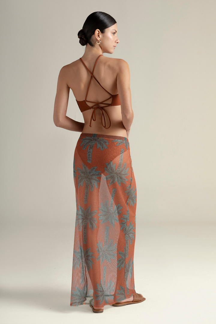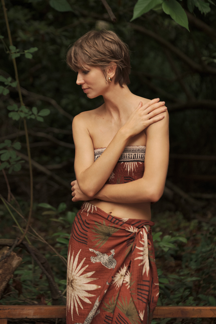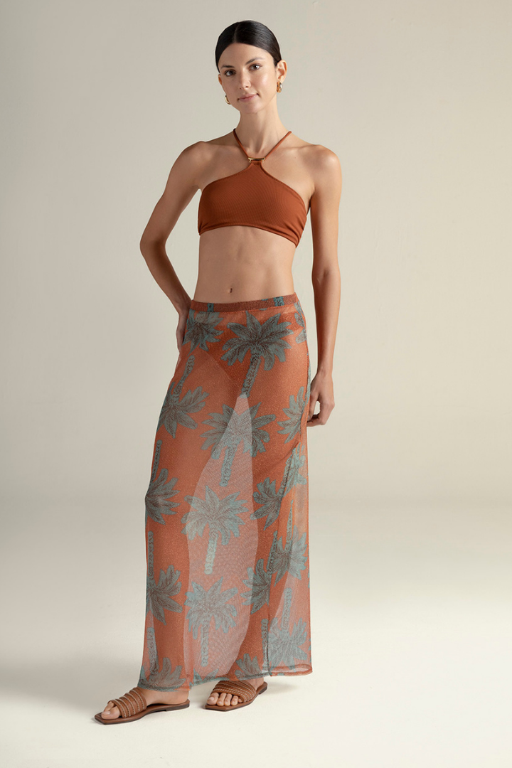 Strappy Top and Long Ivory/Green Pareo Skirt Set