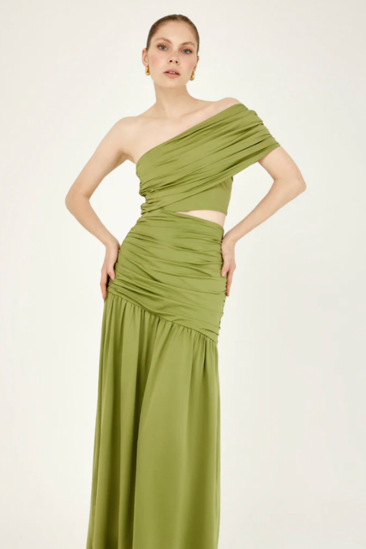 The Branch Maxi Dress redefines elegance with its one-shoulder asymmetric neckline