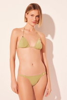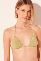 The Green Leaf Curtain Bra Bikini, made from UV50 Crepon Lycra, has no padding and ties at the back.