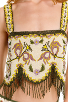 The Aida Crop Top is crafted entirely from hand-applied beads, making it a true work of art.